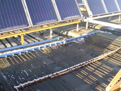 danach folgen 5 Flachkollektoren, die parallel verschaltet sind. Diese dienen als Vorwärmer.